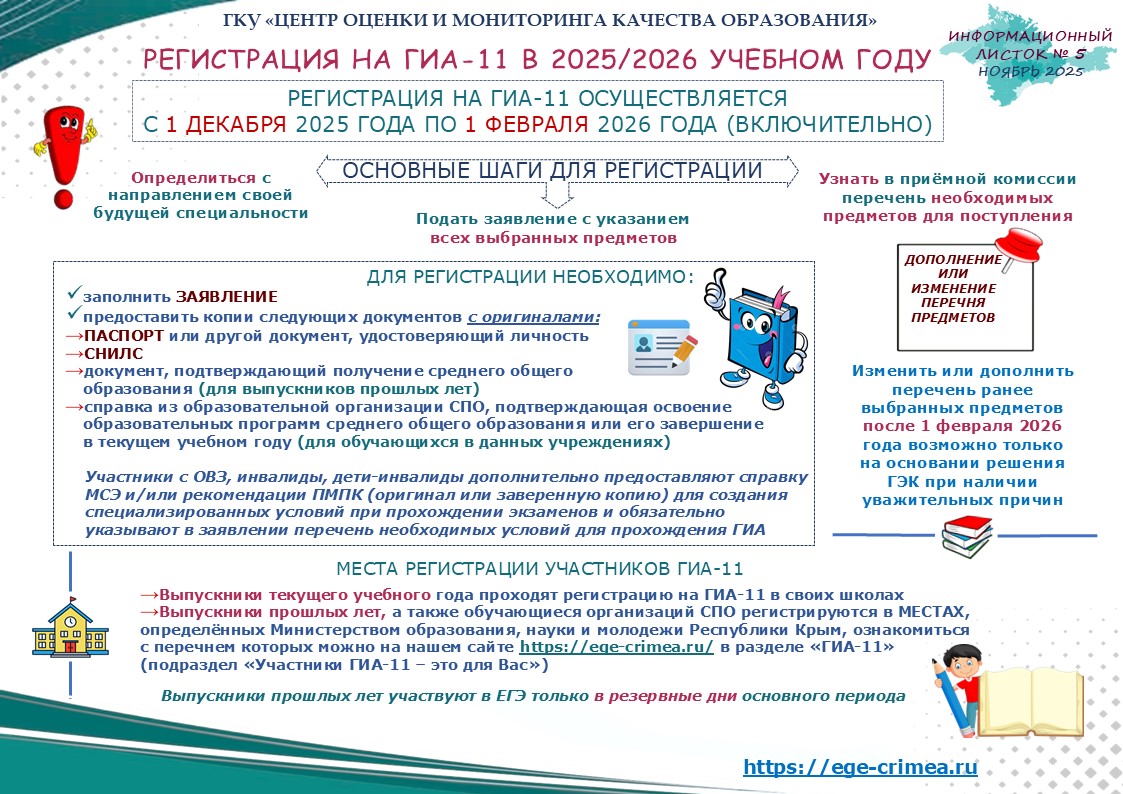 Информационный листок ЕГЭ 11 класс